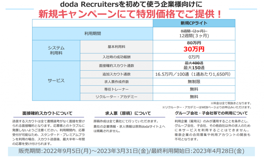 【doda Recruiters(デューダ リクルーターズ)】30万円~新規掲載キャンペーン《2023年3月31日申込まで限定》